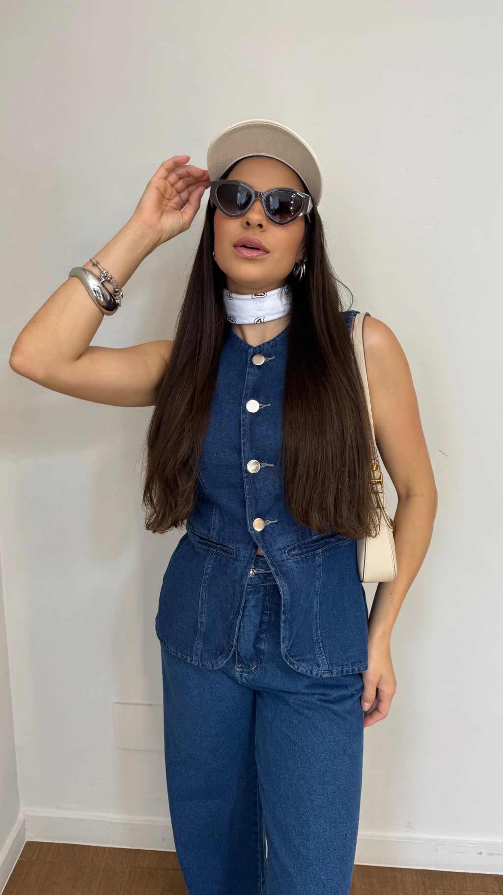 Renove seu visual com o Conjunto Calça e Colete Jeans Bruna e descubra uma peça cheia de personalidade e conforto para o seu dia a dia!